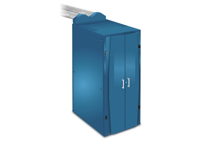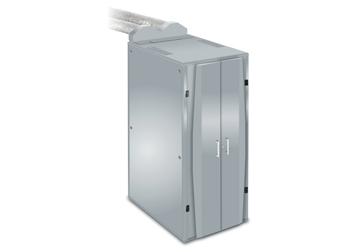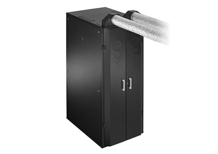 Hot air emitting from the back of the cabinet is captured and ducted away to dissipate elsewhere. This warm exhaust air can even be utilised in winter to help reduce heating bills.